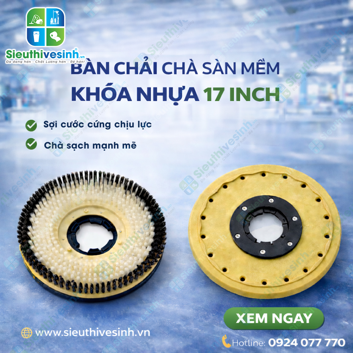 Để vệ sinh các bề mặt sàn cần làm sạch nhẹ nhàng nhưng vẫn đảm bảo hiệu quả, việc lựa chọn đúng loại bàn chải là yếu tố rất quan trọng. Bàn chải chà sàn mềm khóa nhựa 17 inch dùng cho máy chà sàn là giải pháp lý tưởng dành cho các dòng máy chà sàn đơn, giúp làm sạch bụi bẩn, giữ bề mặt sàn sáng đẹp mà không gây trầy xước.