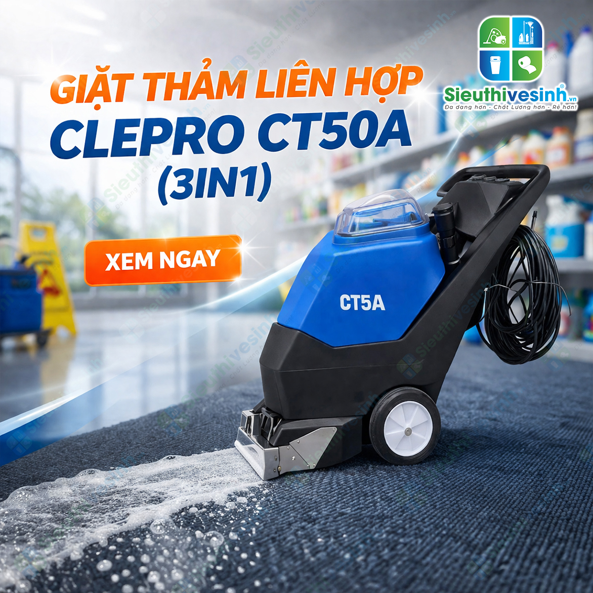 Clepro CT5A là lựa chọn lý tưởng cho các đơn vị cần thiết bị giặt thảm mạnh – sạch sâu – chuyên nghiệp, giúp tiết kiệm thời gian, nhân công và nâng cao chất lượng vệ sinh.