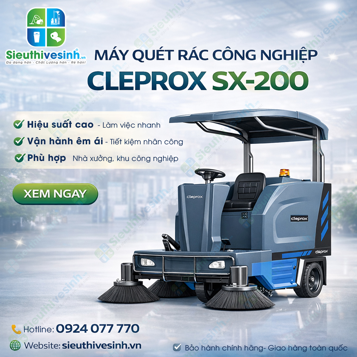 <a href=”https://sieuthivesinh.vn/may-quet-rac-cong-nghiep-ngoi-lai-cleprox-sx200″>Máy quét rác công nghiệp ngồi lái CleproX SX200</a> là giải pháp làm sạch chuyên nghiệp dành cho những khu vực có diện tích lớn, nơi cần tốc độ vệ sinh nhanh, hiệu suất cao và tiết kiệm tối đa chi phí nhân công. Máy được thiết kế dạng xe ngồi lái hiện đại, giúp người vận hành làm việc thoải mái trong thời gian dài mà không mất nhiều sức.