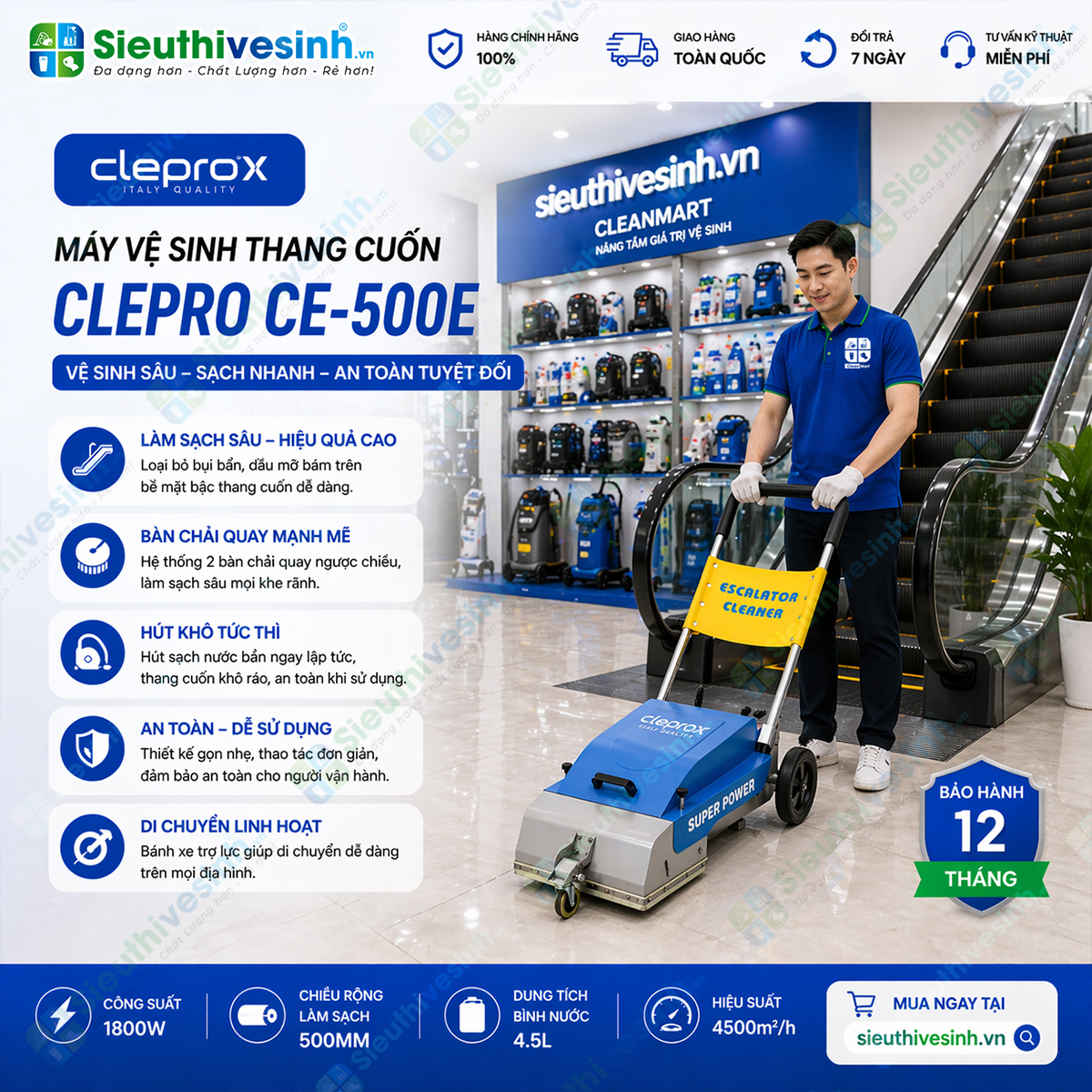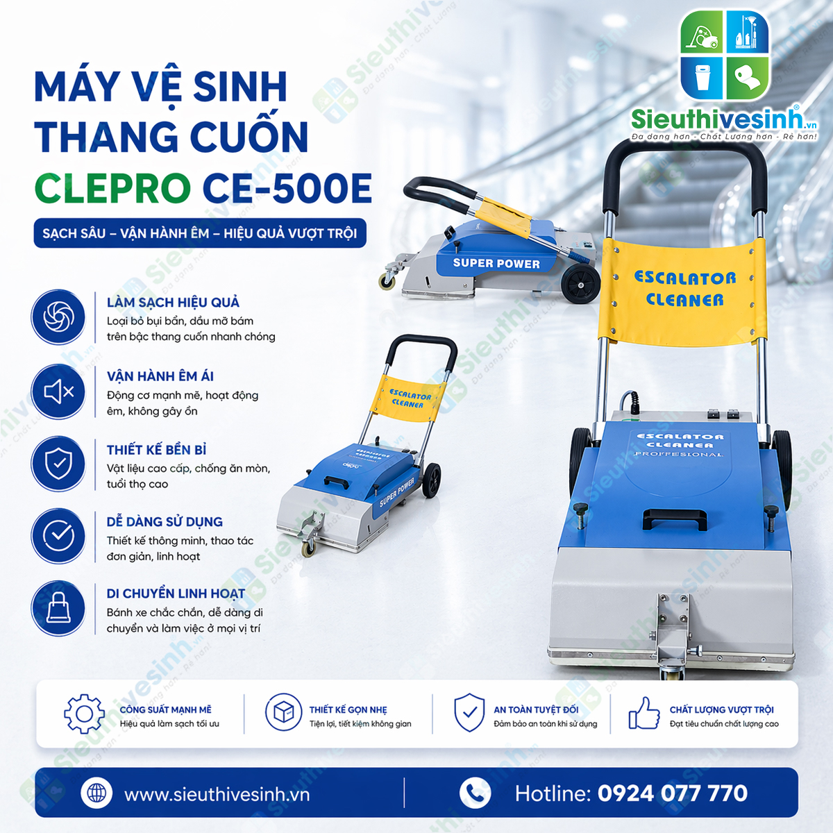 - Tên sản phẩm: Máy vệ sinh thang cuốn Clepro CE-500E