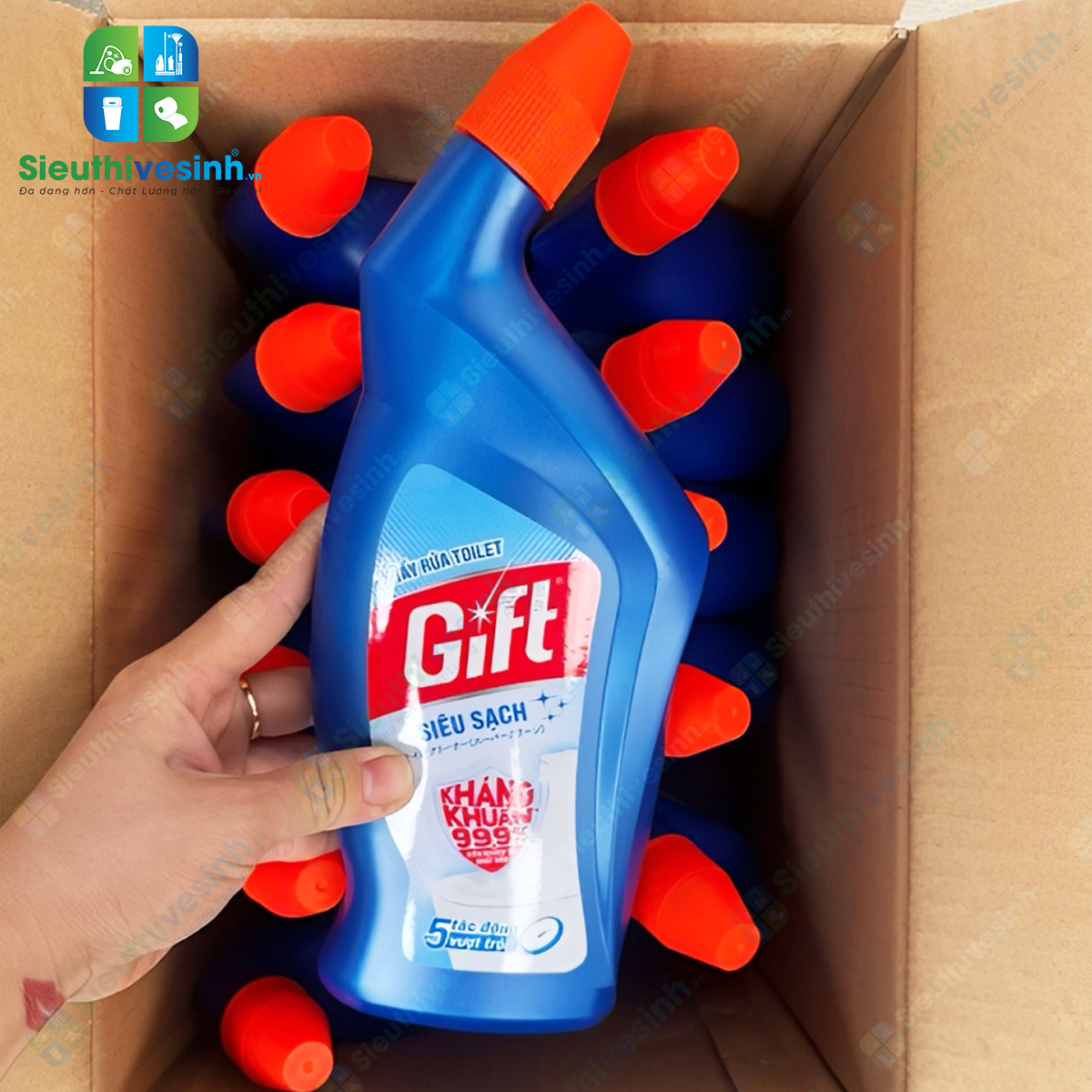 NƯỚC TẨY TOILET GIFT SIÊU SẠCH CHAI 1 LÍT là dung dịch tẩy rửa chuyên dụng giúp làm sạch nhanh các vết ố vàng, mảng bám, cặn canxi và mùi hôi khó chịu trong bồn cầu. Sản phẩm giúp giữ bề mặt sứ trắng sáng – sạch sẽ – thơm mát, phù hợp sử dụng cho gia đình và khu vệ sinh công cộng.